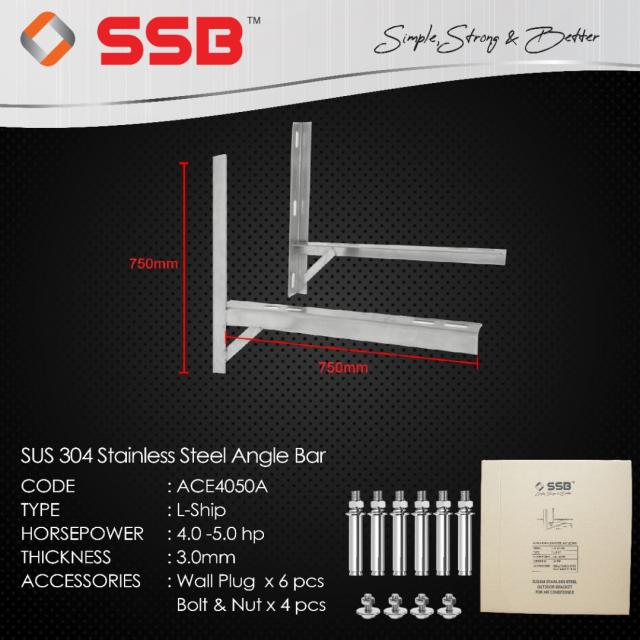 PRODUCT DETAIL OF SSB SUS304 STAINLESS STEEL L-SHIP OUTDOOR BRACKET 4.0-5.0HP MODEL: ACE4050A C/W S/S304 BOLT AND NUT & WALL PLUG
