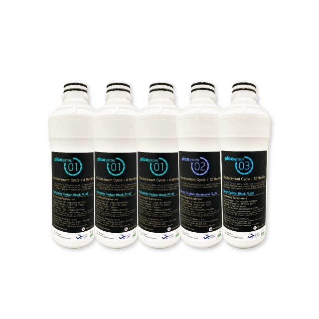 Consist of Pureal Premium Replacement Filter, Total 5 Filter Bottles for 1 Year Supply : Composite Carbon Block PLUS Filter 3 Pieces : 4 Months Usage Electro Positive Membrane PLUS Filter 1 Piece : 12 Months Usage Silver Carbon Block PLUS Filter 1 Piece : 12 Months Usage