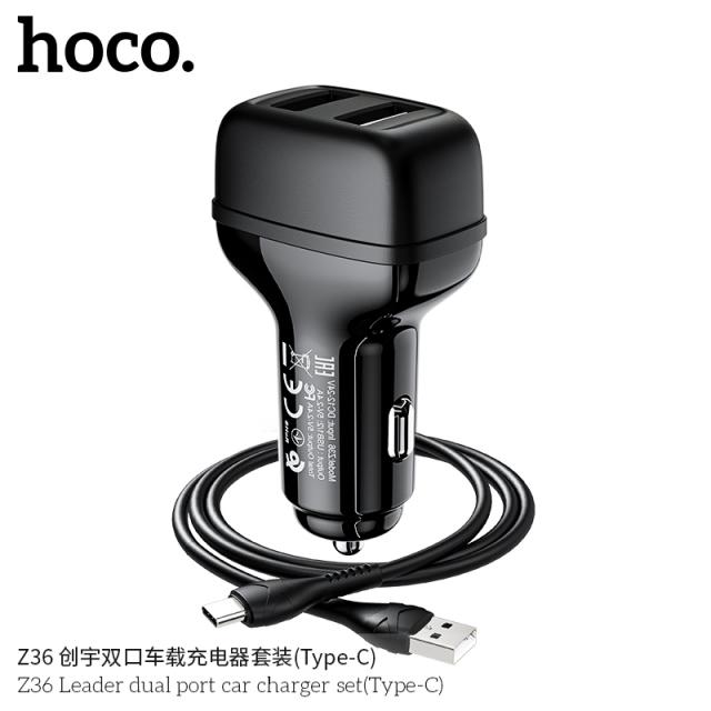 HOCO Z36 (TYPE-C) LEADER DUAL PORT CAR CHARGER SET